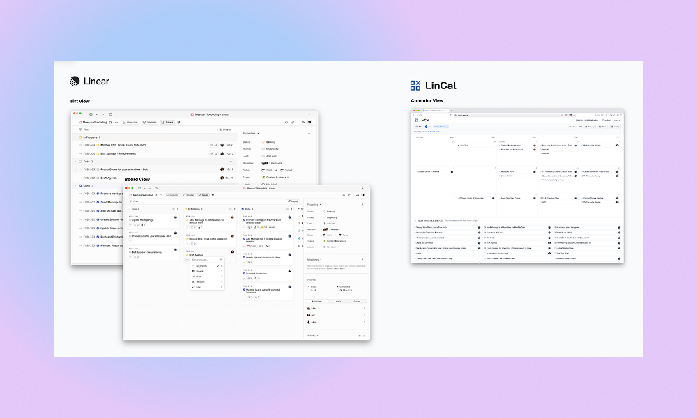 Linear comes with a Board and List View, but sometimes you want to schedule your work on a calendar timeline. That is the reason we created LinCal.
