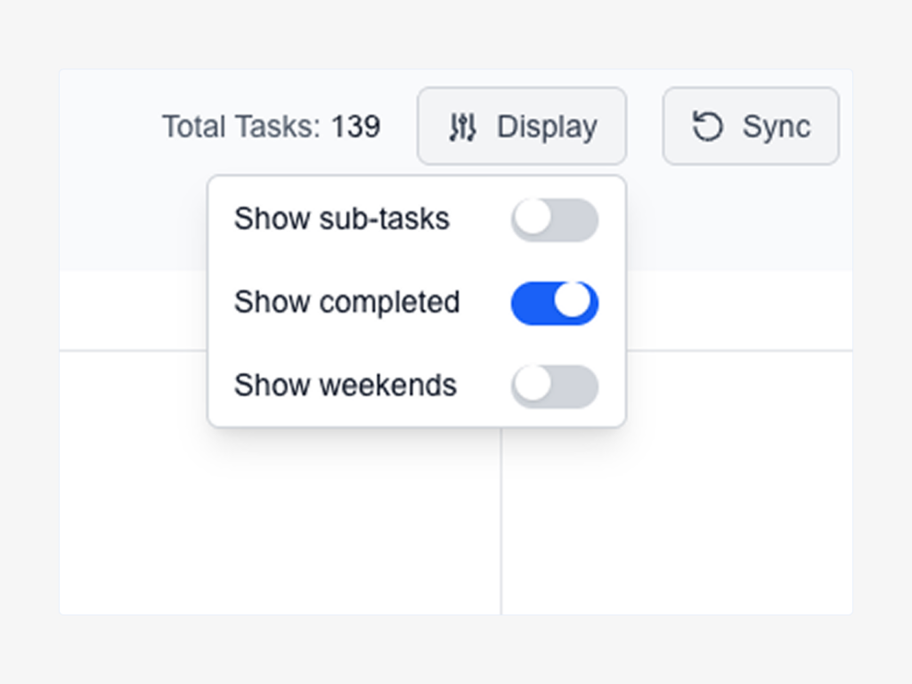 • Customize display settings (hide/show sub-issues, weekends, done tasks