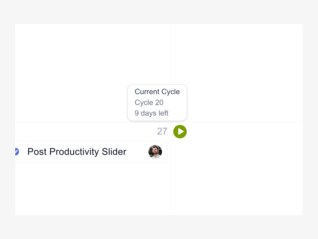 A small icon appears on calendar cells marking the beginning of each cycle. Click it to jump directly to that cycle in Linear. Hover over it to see how many days are left in the current cycle or when the next one begins.