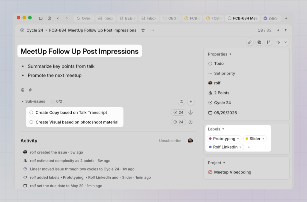 This post walks through how to structure your content workflow in Linear, from a single content piece all the way up to how larger teams can organize across channels and campaigns.
